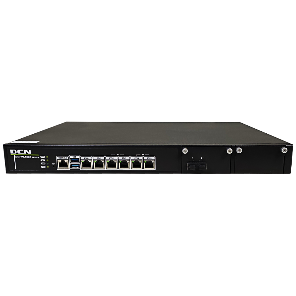 DCFW-1800E-X3005-Pro 下一代防火墙。物理参数:标准610/100/1000M以太网电口,2SFP光口,一个console口,2USB口,1T企业级硬盘,1扩展槽;1U标准机箱。